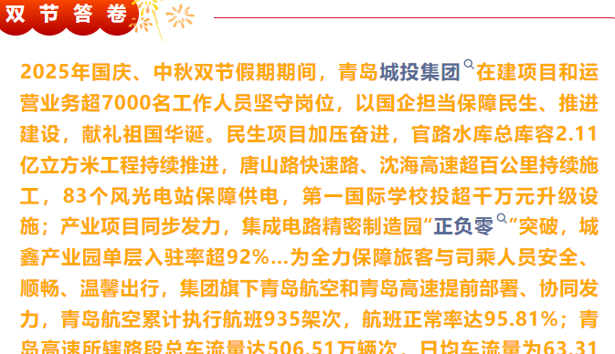 -                                         935架次,506萬(wàn)輛次,7000余人在崗……青島城投雙節(jié)答卷來(lái)了!